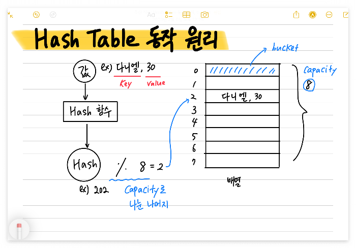 맵(map)과 해시 테이블(hash table) 1. Map key-value 쌍을 저장하는 ADT key는 중복 불가, value는 중복 가능 언제 주로 사용하는가 1대1로 대응되는 정보를 저장할 때 ex) 이름 - 전화번호 특정 정보에 대한 카운팅을 할 때 ex) 이름 - 득표 수 구현체 Hash Table Tree 기반 자료구조 2. Hash Table (Hash Map) 배열과 해시 함수를 이용해서 Map을 구현한 자료구조 해시 함수란? 임의의 크기를 가지는 type의 데이터를 고정된 크기를 가지는 type의 데이터로 변환하는 함수 Hash Table에서 해시 함수는 주로 임의의 데이터를 정수로 변환하는 역할을 담당함 특정 데이터를 해시 함수에 넣어서 나온 정수값을 '해시(hash)'라고 부른다. 데이터에 접근하는 시간이 상수 시간으로 매우 빠.. CS 공부/자료구조 2023.02.06