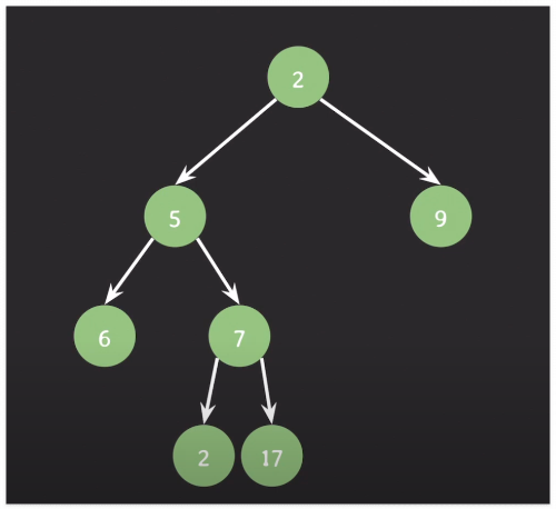 - 모든 부모 노드는 하나의 자녀 노드만 가지는 트리