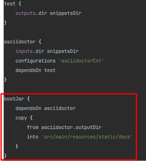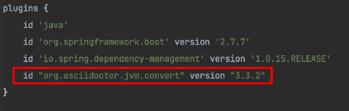 - asciidocVersion은 dependency에서 추가할 라이브러리 버전에 들어갈 버전을 변수처럼 따로 빼 놓은 것이라 생각하면 됩니다.